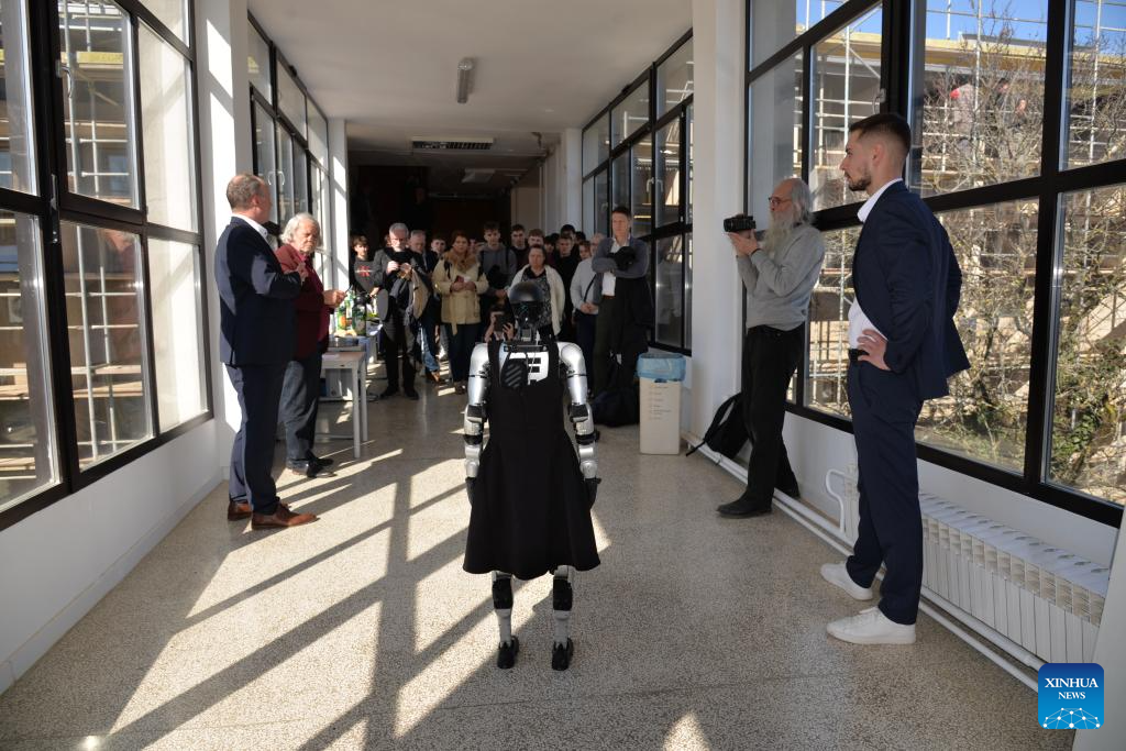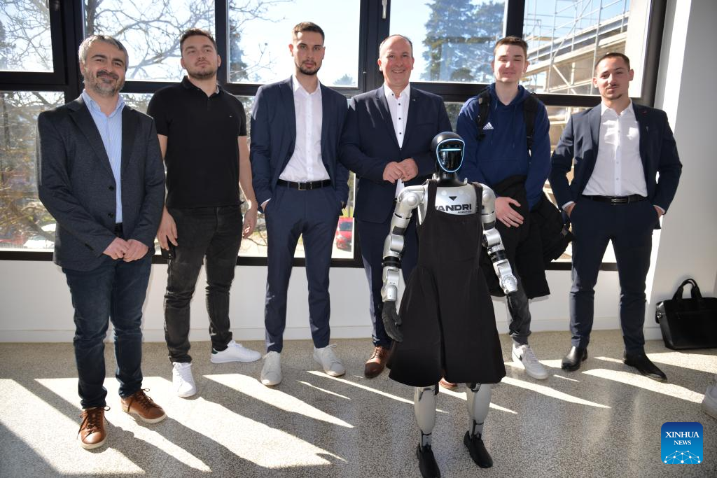 Named Tonka after a popular Croatian female name to reflect local culture, the robot is built on the Unitree G1 platform developed by China's Unitree Robotics. (Xinhua/Ma Zhen)