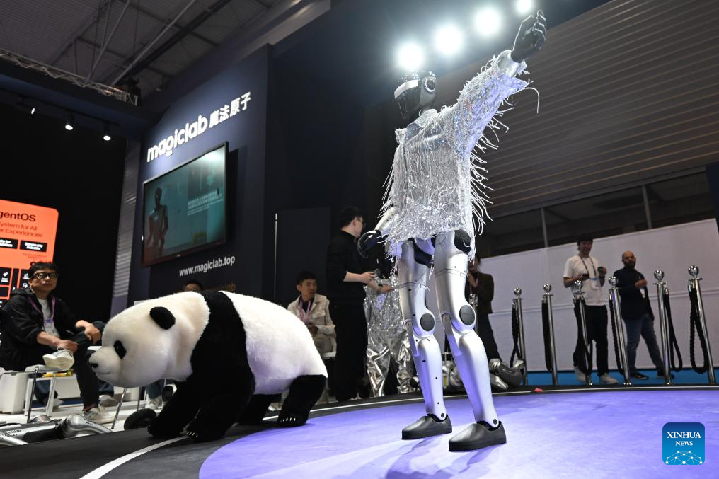 This photo taken on March 3, 2026 shows a humanoid robot manufactured by China's Magiclab Robotics Technology Co., Ltd. during the 2026 Mobile World Congress in Barcelona, Spain. The 2026 Mobile World Congress (MWC) opened on Monday in Barcelona, Spain. According to its organizers, a China Pavilion has been set up at the congress for the first time, featuring major Chinese companies including China Mobile, China Unicom, Huawei, ZTE, Honor and Xiaomi, showcasing their latest advancements in mobile communications and AI technologies. (Xinhua/Cheng Min)