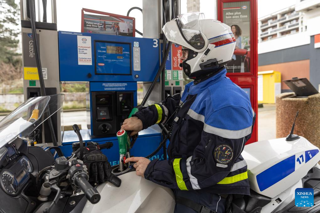 A man refuels his motorbike in a petrol station in Lille, north France, on March 11, 2026. European Commission President Ursula von der Leyen said on Wednesday the Middle East conflict has imposed heavy economic costs on Europe, driving up energy prices and adding billions of euros to import bills. (Photo by Sebastien Courdji/Xinhua)