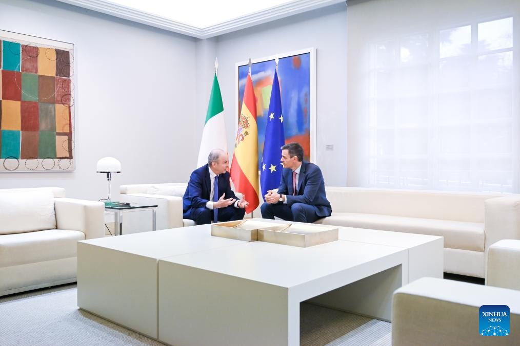 Spanish Prime Minister Pedro Sanchez (R) talks with visiting Irish Prime Minister Micheal Martin in Madrid, Spain, on March 10, 2026. (Photo by Gustavo Valiente/Xinhua)