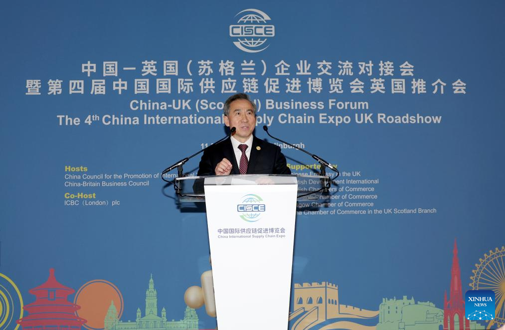 EDINBURGH, Britain, March 12 (Xinhua) -- A China-UK (Scotland) business forum and the UK roadshow for the 4th China International Supply Chain Expo (CISCE) was held in Edinburgh on Wednesday evening, bringing together more than 100 representatives from government, industry and academia to explore opportunities for closer cooperation.
