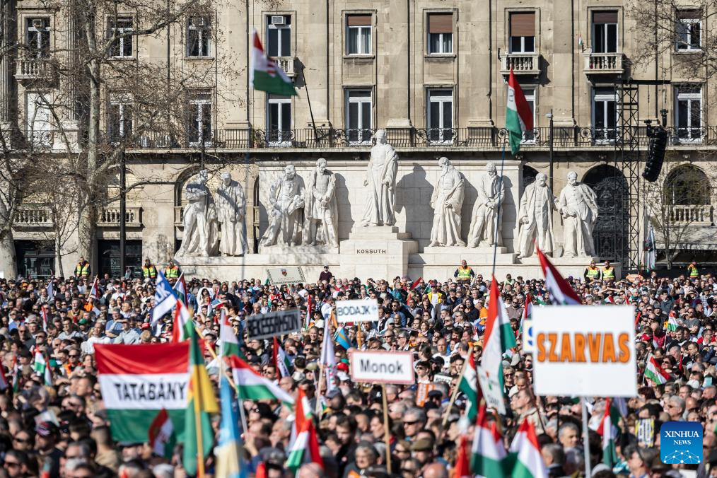 BUDAPEST, March 15 (Xinhua) -- Hungarian Prime Minister Viktor Orban on Sunday pledged to keep Hungary an "island of security and calm" during a massive rally marking the anniversary of the country's 1848 revolution and war of independence.