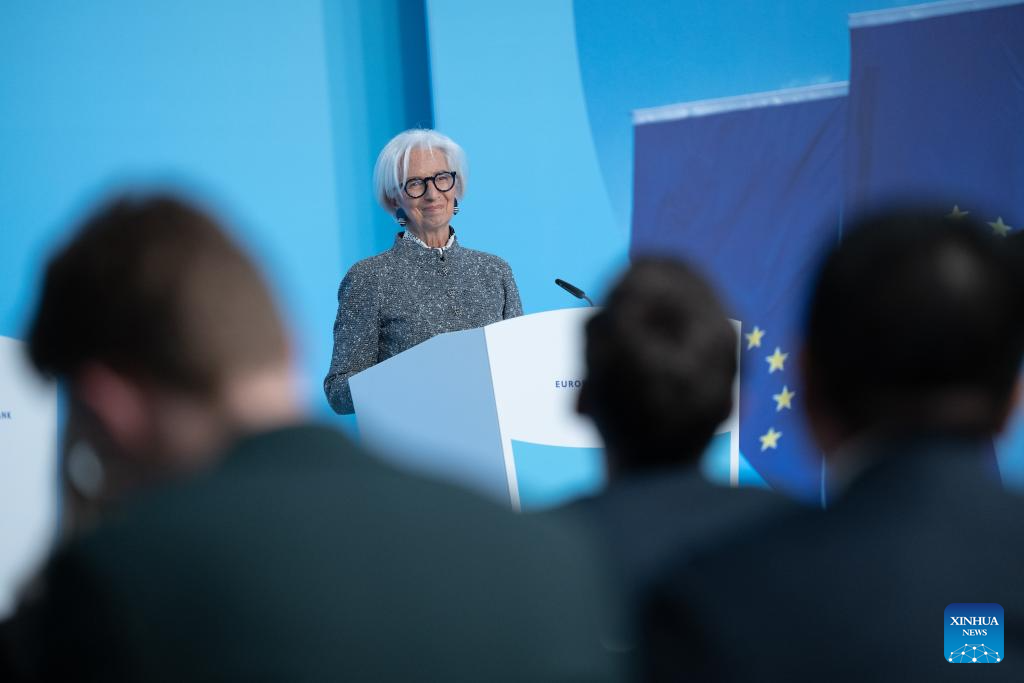 European Central Bank (ECB) President Christine Lagarde attends a press conference in Frankfurt, Germany, March 19, 2026. The ECB on Thursday kept key interest rates unchanged as heightened geopolitical tensions weigh on the outlook of inflation and economy in the euro area. (ECB/Handout via Xinhua)