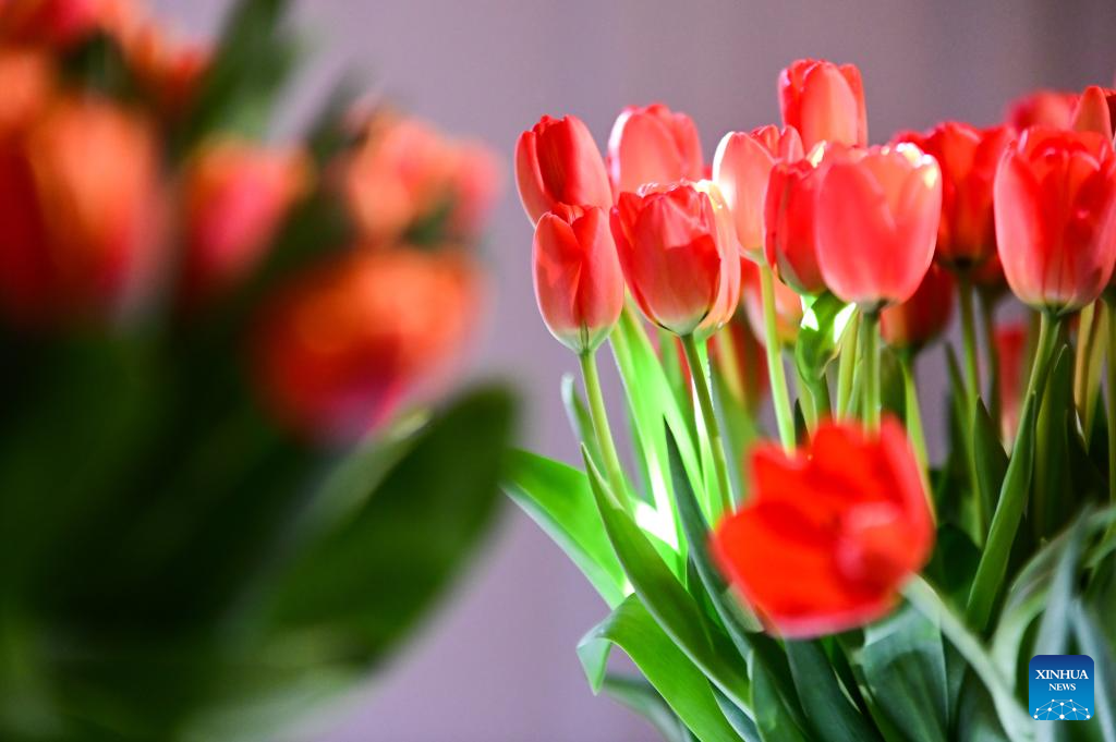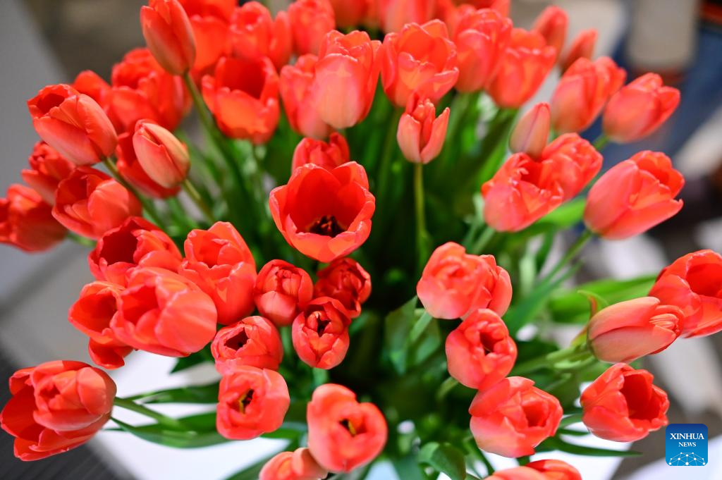 Tulips are on display during the 16th Tulip Exhibition at Wilanow Palace in Warsaw, Poland, on March 21, 2026. (Photo by Aleksy Witwicki/Xinhua)