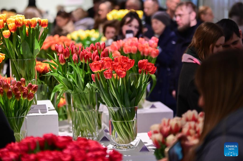 People visit the 16th Tulip Exhibition at Wilanow Palace in Warsaw, Poland, on March 21, 2026. (Photo by Aleksy Witwicki/Xinhua)