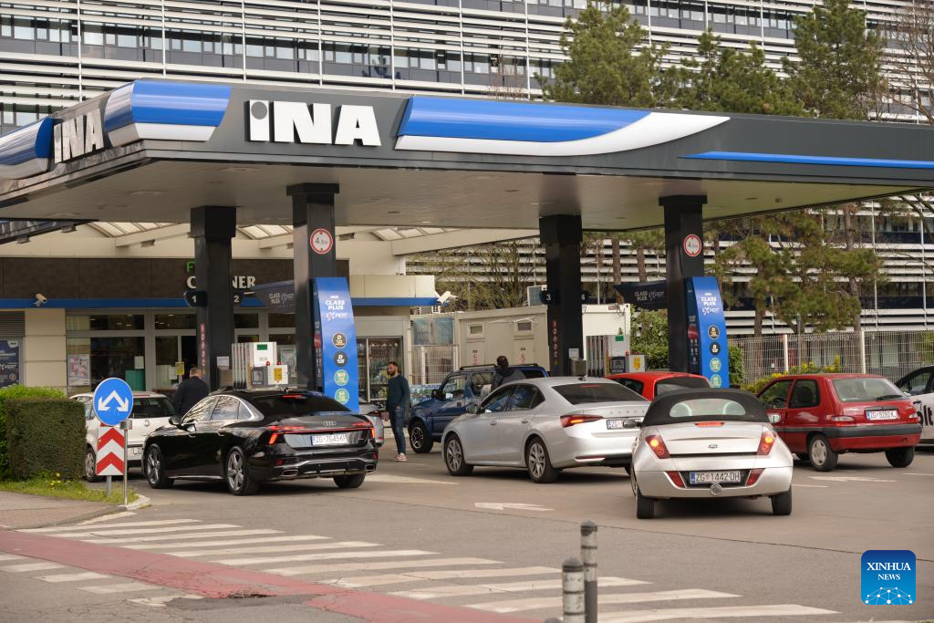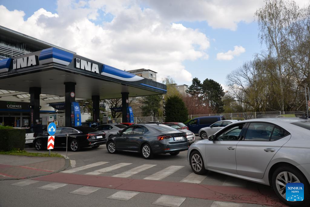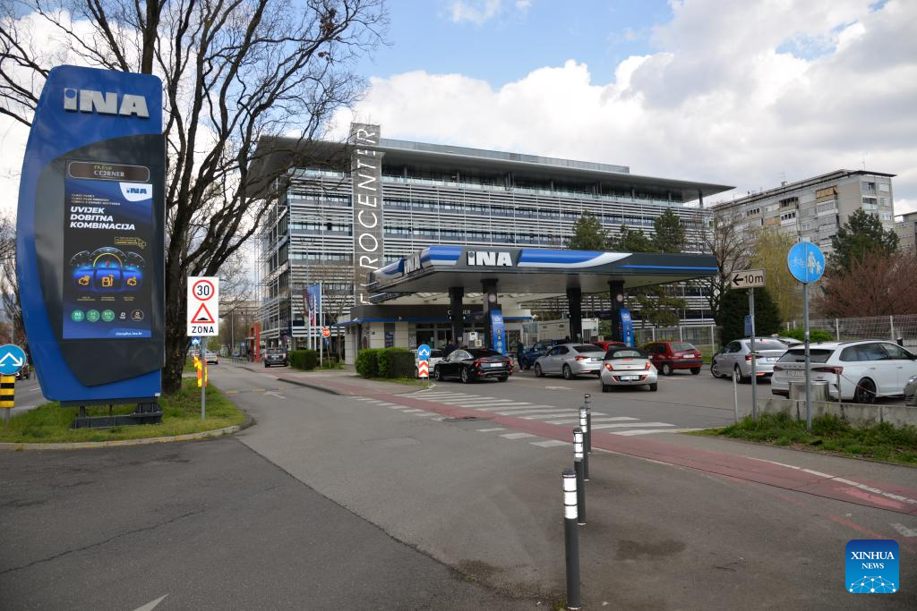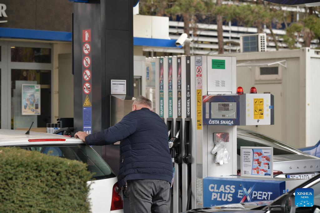 Photo taken on March 23, 2026 shows a gas station in Zagreb, Croatia. The Croatian government has decided to extend a fuel price cap for another two weeks amid rising prices linked to the situation in the Middle East, Prime Minister Andrej Plenkovic said on Monday during a government session. (Xinhua/Ma Zhen)