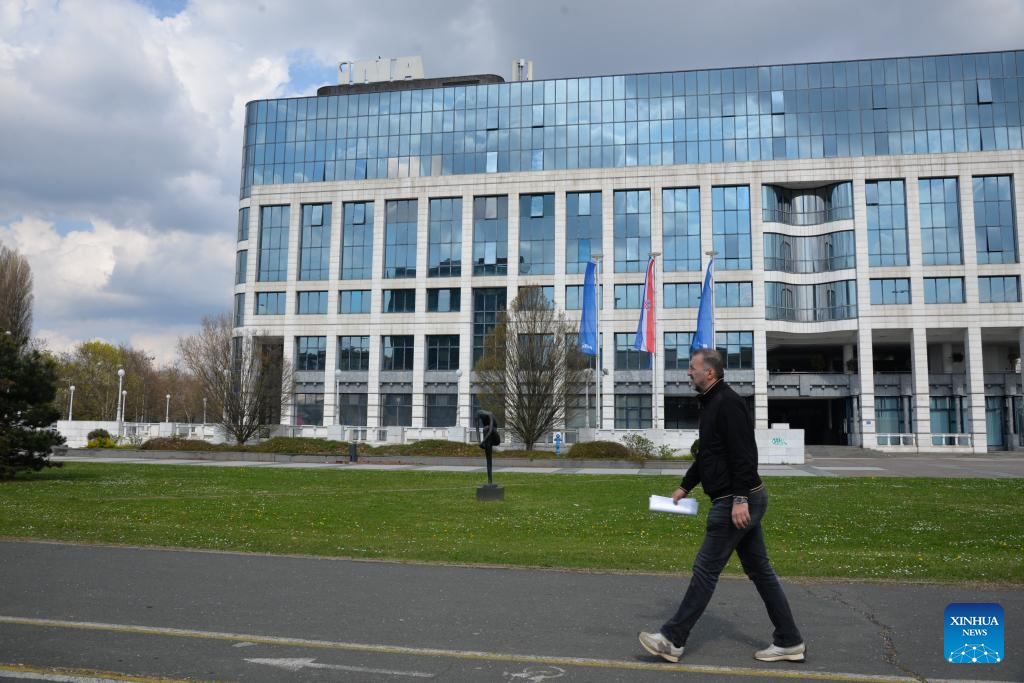 A man walks in front of the building of INA, Croatian leading oil and gas company, in Zagreb, Croatia on March 23, 2026. The Croatian government has decided to extend a fuel price cap for another two weeks amid rising prices linked to the situation in the Middle East, Prime Minister Andrej Plenkovic said on Monday during a government session. (Xinhua/Ma Zhen)