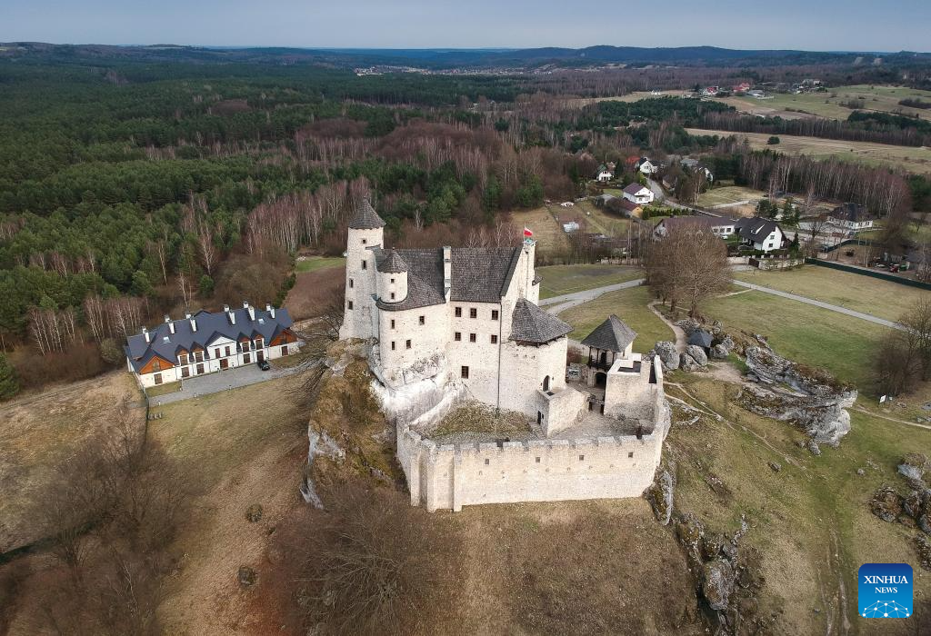 An aerial drone photo taken on April 2, 2026 shows the Bobolice Castle in Bobolice, Poland. Built in the 14th century, the castle is one of the best-preserved medieval castles along the Trail of the Eagles' Nests. The Trail of the Eagles' Nests is a renowned historical and cultural tourism route in southern Poland. Connecting southern Polish cities of Krakow and Czestochowa, the route stretches about 160 km and features more than 20 medieval castles built on limestone cliffs. (Photo by Aleksy Witwicki/Xinhua)