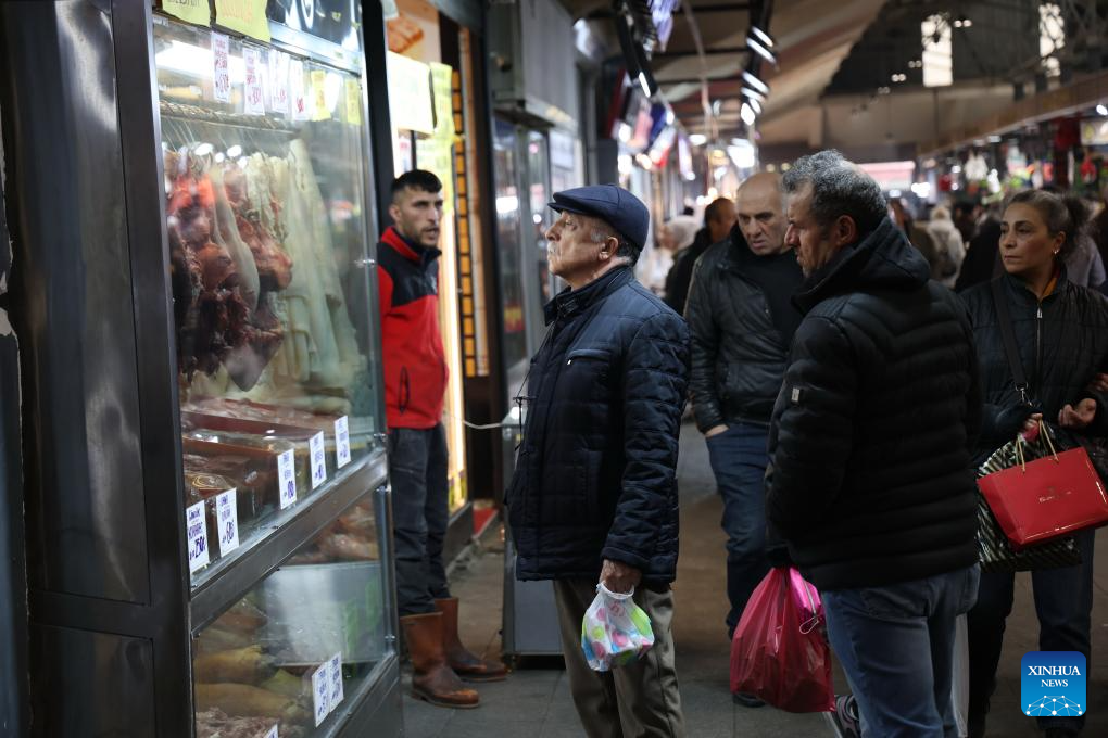 People shop at a local market in Ankara, Türkiye, April 3, 2026. Türkiye's annual inflation marginally eased to 30.87 percent in March from 31.53 percent in February, marking a four-year low but remaining stubbornly high, according to official data on Friday.
