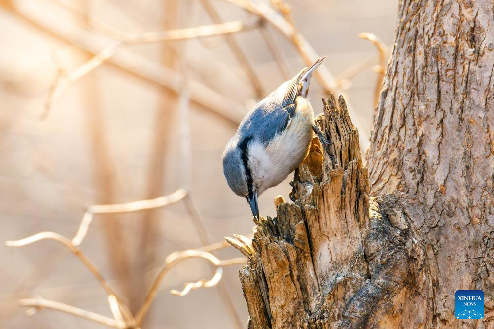 A sitta europaea is pictured in Vladivostok, Russia, April 2, 2026. (Photo by Andrey Matveenko/Xinhua)