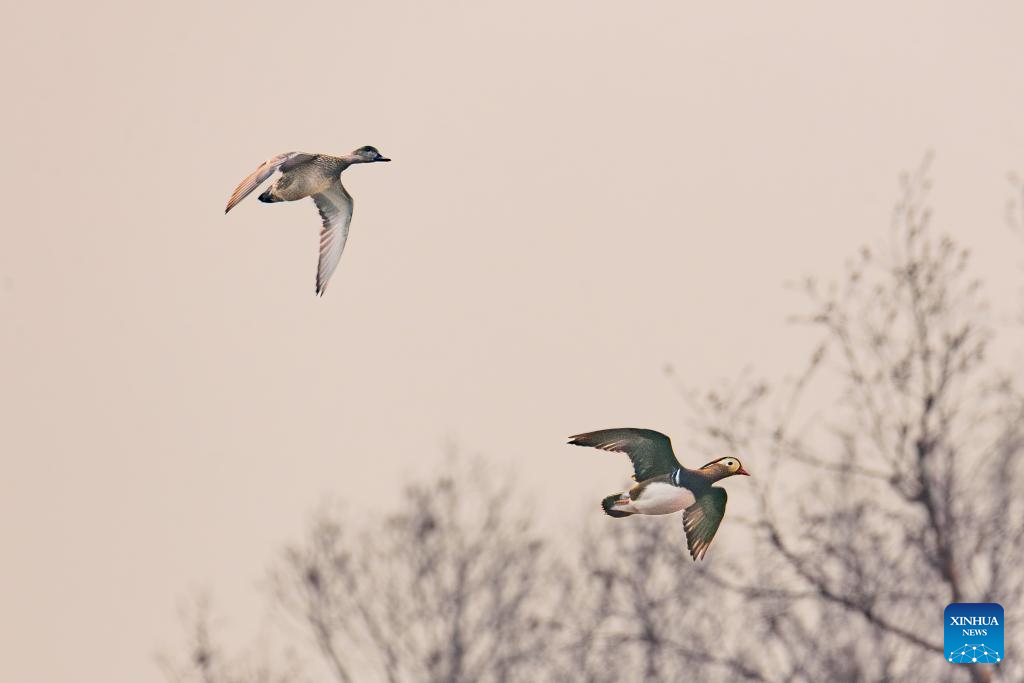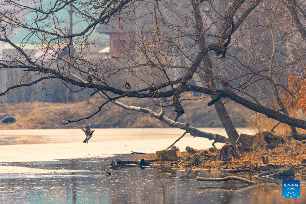 Mandarin ducks are pictured in Vladivostok, Russia, April 2, 2026. (Photo by Andrey Matveenko/Xinhua)