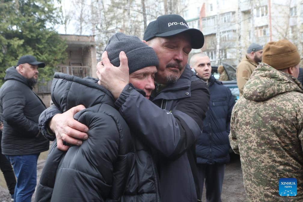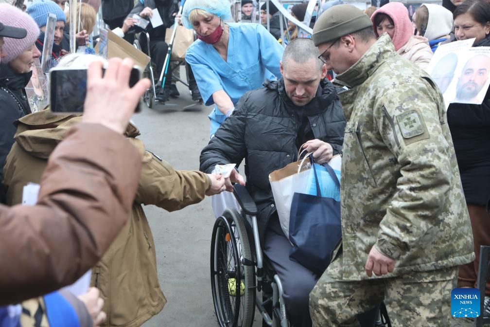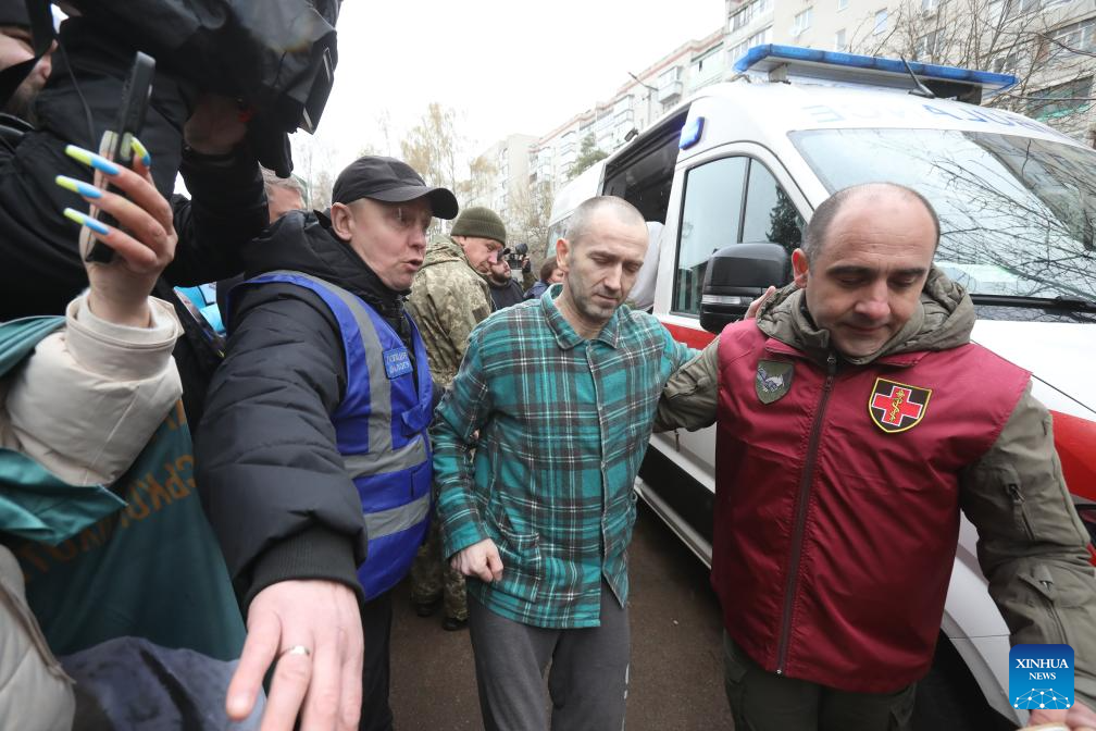 KIEV, April 11 (Xinhua) -- A total of 182 Ukrainians returned home Saturday as part of a prisoner exchange with Russia ahead of Orthodox Easter, Ukrainian authorities said.