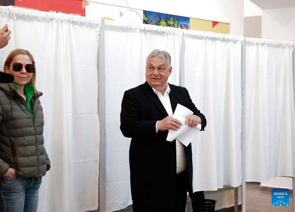 Hungarian Prime Minister Viktor Orban casts his ballot at a polling station in Budapest, Hungary, April 12, 2026. Hungary's parliamentary elections kicked off at 6:00 a.m. local time (0400 GMT) on Sunday, with about 8.1 million eligible voters, according to the National Election Office. (Xinhua/He Canling)