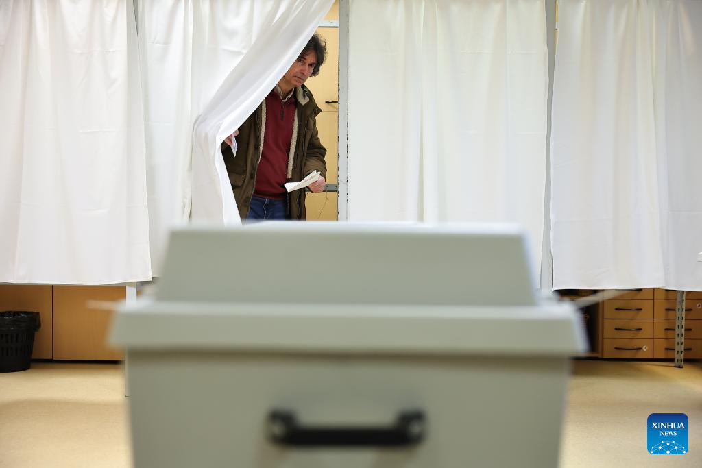 A voter is pictured at a polling station in Budapest, Hungary, April 12, 2026. Hungary's parliamentary elections kicked off at 6:00 a.m. local time (0400 GMT) on Sunday, with about 8.1 million eligible voters, according to the National Election Office. (Photo by Laszlo Balog/Xinhua)