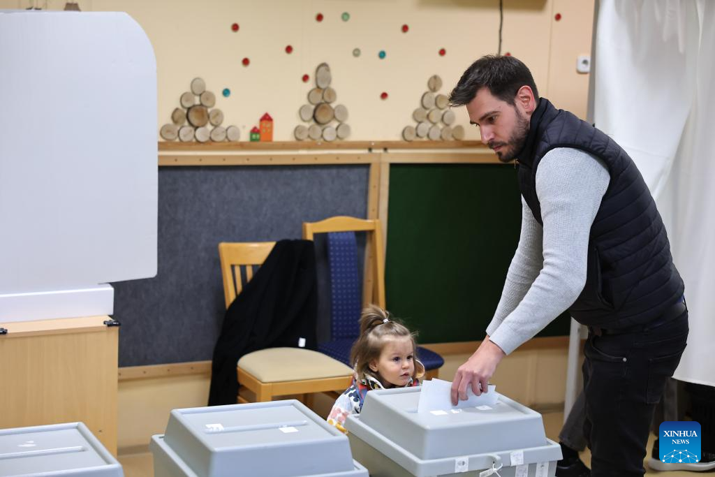 A voter casts his ballot at a polling station in Budapest, Hungary, April 12, 2026. Hungary's parliamentary elections kicked off at 6:00 a.m. local time (0400 GMT) on Sunday, with about 8.1 million eligible voters, according to the National Election Office. (Photo by David Balogh/Xinhua)