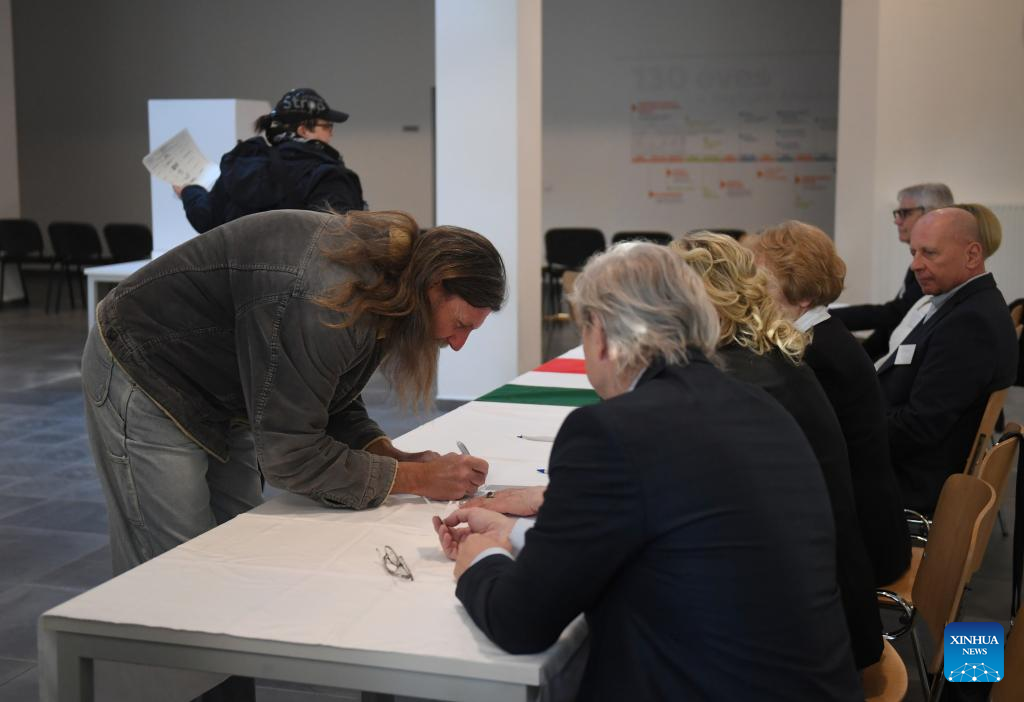 A voter is pictured at a polling station in Budapest, Hungary, April 12, 2026. Hungary's parliamentary elections kicked off at 6:00 a.m. local time (0400 GMT) on Sunday, with about 8.1 million eligible voters, according to the National Election Office. (Photo by David Balogh/Xinhua)
