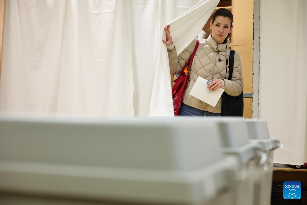 A voter casts her ballot at a polling station in Budapest, Hungary, April 12, 2026. Hungary's parliamentary elections kicked off at 6:00 a.m. local time (0400 GMT) on Sunday, with about 8.1 million eligible voters, according to the National Election Office. (Photo by David Balogh/Xinhua)