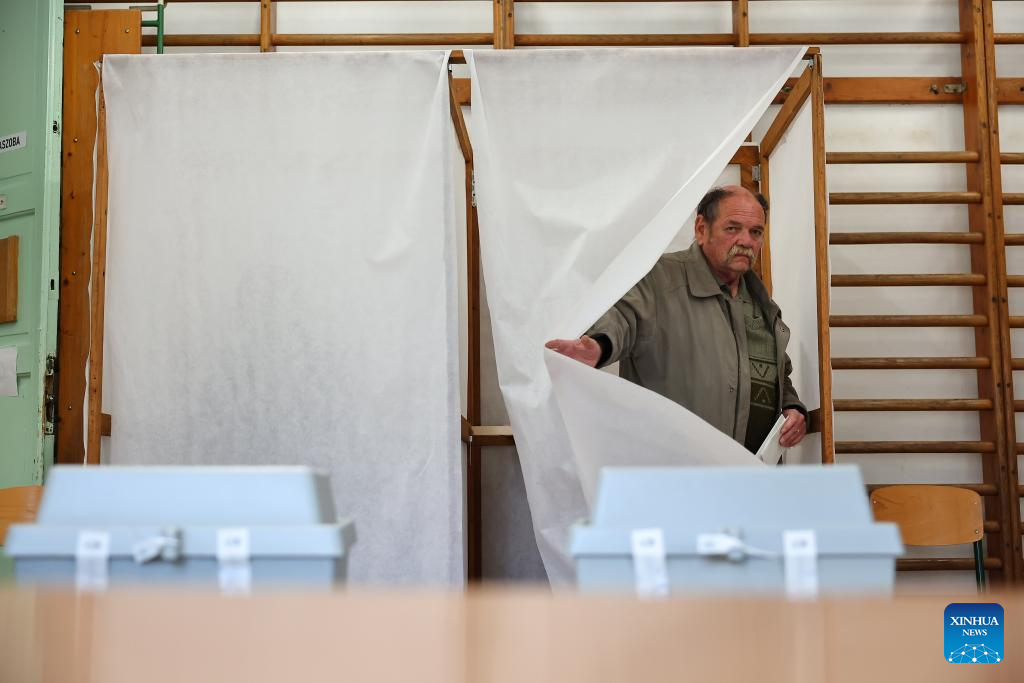 A voter casts his ballot at a polling station in Budapest, Hungary, April 12, 2026. Hungary's parliamentary elections kicked off at 6:00 a.m. local time (0400 GMT) on Sunday, with about 8.1 million eligible voters, according to the National Election Office. (Photo by David Balogh/Xinhua)