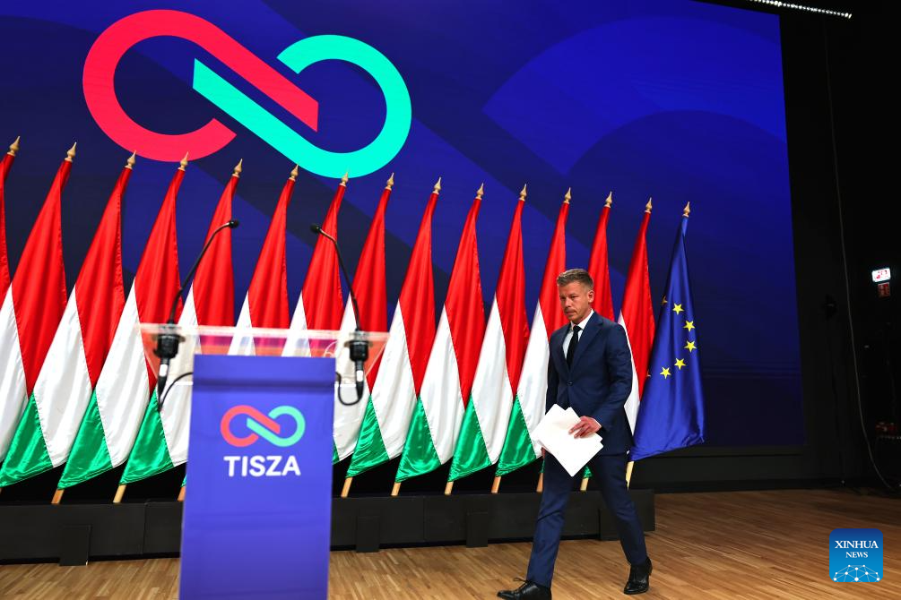 BUDAPEST, April 13 (Xinhua) -- Peter Magyar, whose Tisza party won Hungary's parliamentary election on Sunday, has pledged constructive cooperation with the European Union (EU) while pursuing a pragmatic approach to foreign and economic policy.