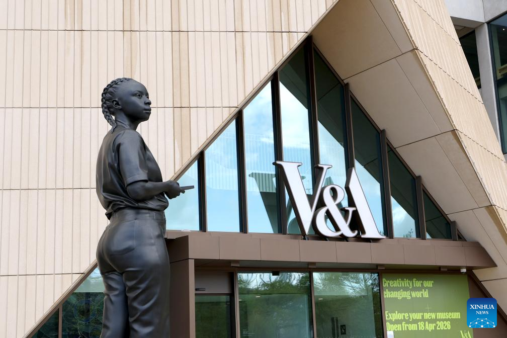 A woman visits V&A East Museum at press day in London, Britain, April 15, 2026. The museum will open on April 18. (Xinhua/Li Ying)