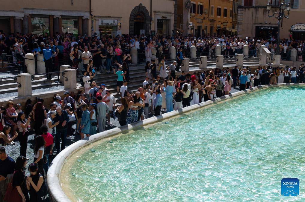 Tourists visit the Trevi Fountain in Rome, Italy, April 17, 2026. (Xinhua/Li Jing)