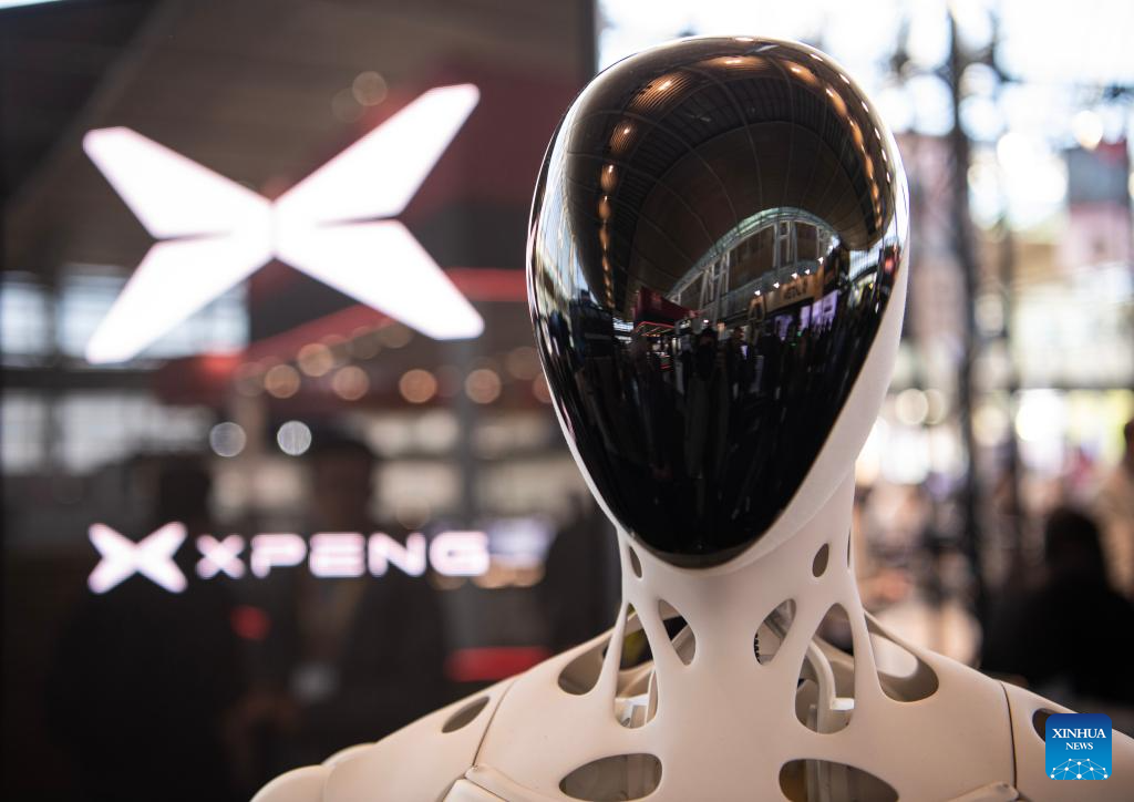 A humanoid robot from Xpeng is pictured at the Hannover Messe 2026 in Hannover, Germany, April 21, 2026.