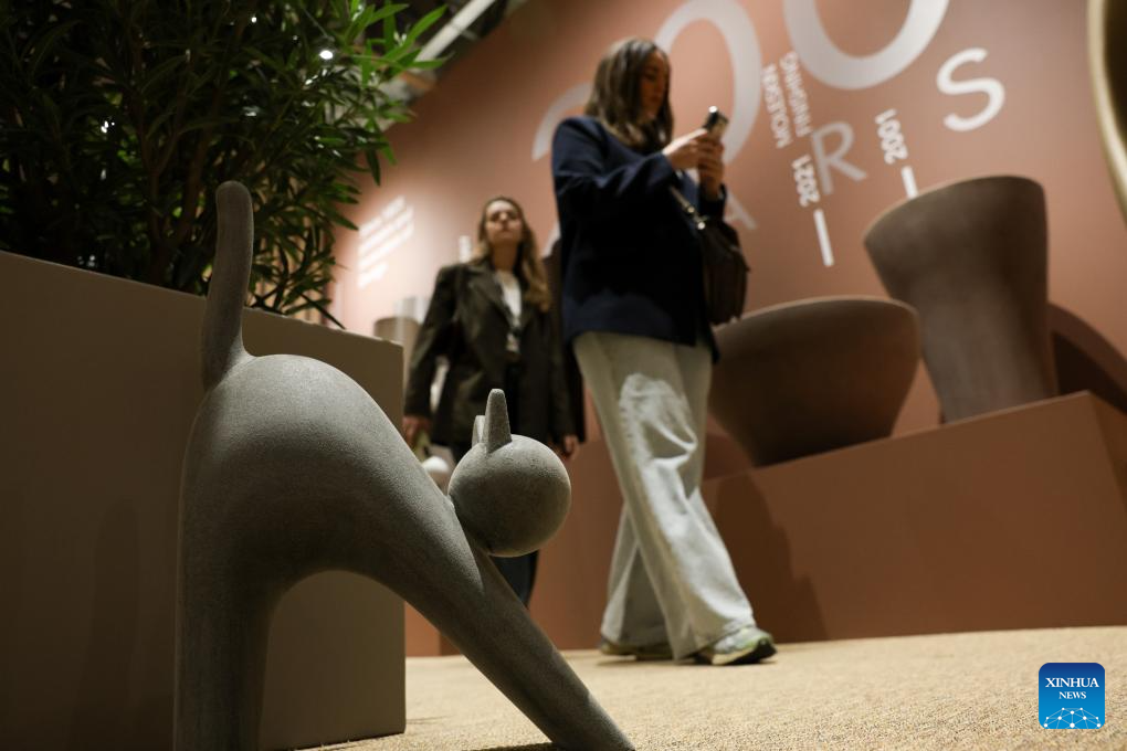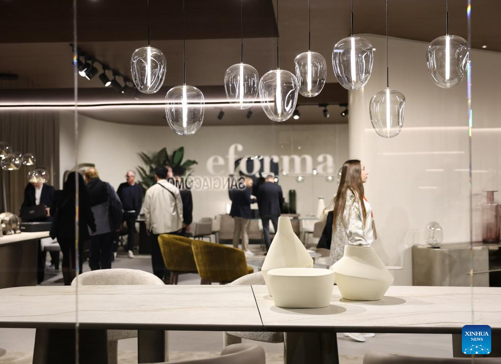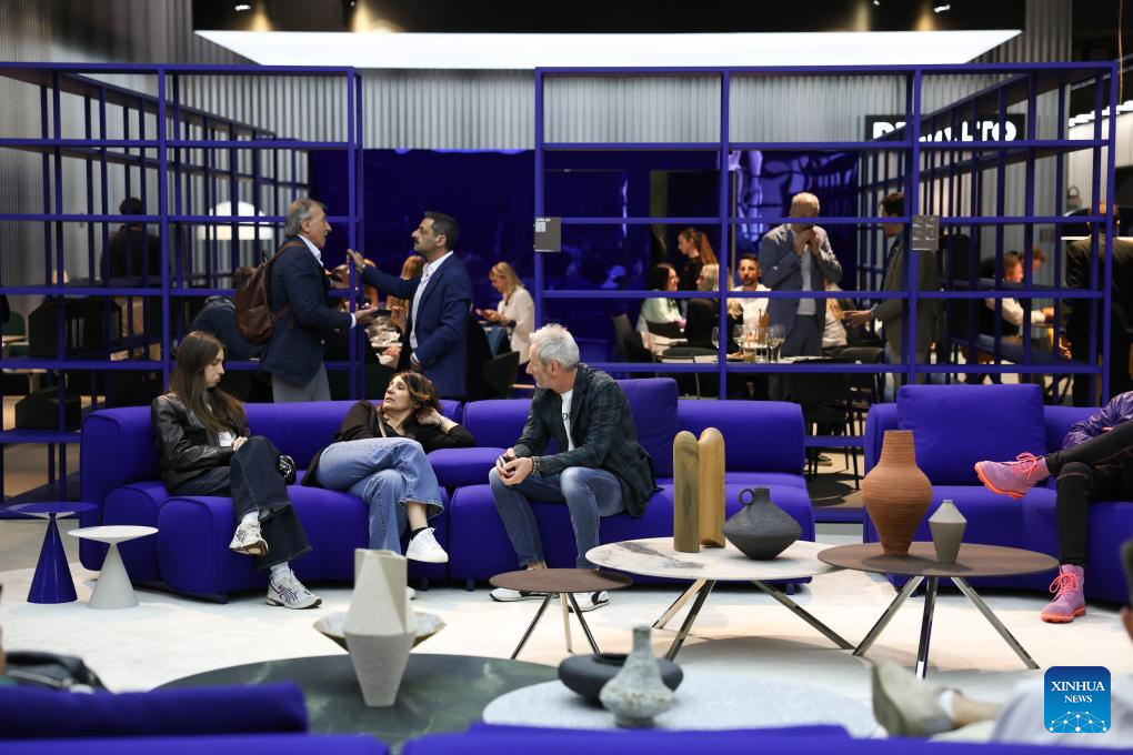 People visit the 64th Salone del Mobile at Fiera Milano Rho exhibition center in Milan, Italy, April 21, 2026. The 64th Salone del Mobile, an international furniture and design industry event, is held here from April 21 to 26. (Xinhua/Li Jing)