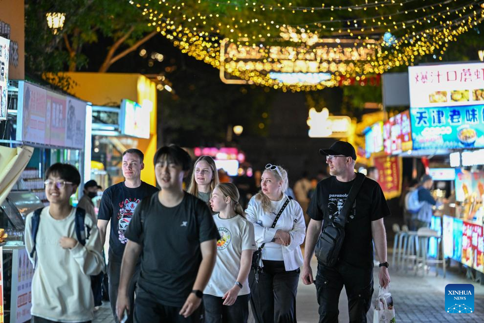 Tourists from Russia visit the Italian Style Area in Tianjin, north China, April 24, 2026. In recent years, Tianjin has become a popular tourist destination, as the city keeps enriching its nighttime experience by expanding tourism scenarios and diversifying business formats. (Xinhua/Sun Fanyue)