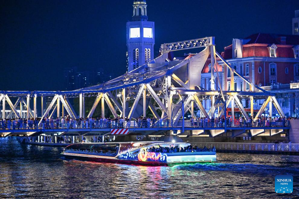 This photo shows a night view of Tianjin, north China, April 24, 2026. In recent years, Tianjin has become a popular tourist destination, as the city keeps enriching its nighttime experience by expanding tourism scenarios and diversifying business formats. (Xinhua/Sun Fanyue)