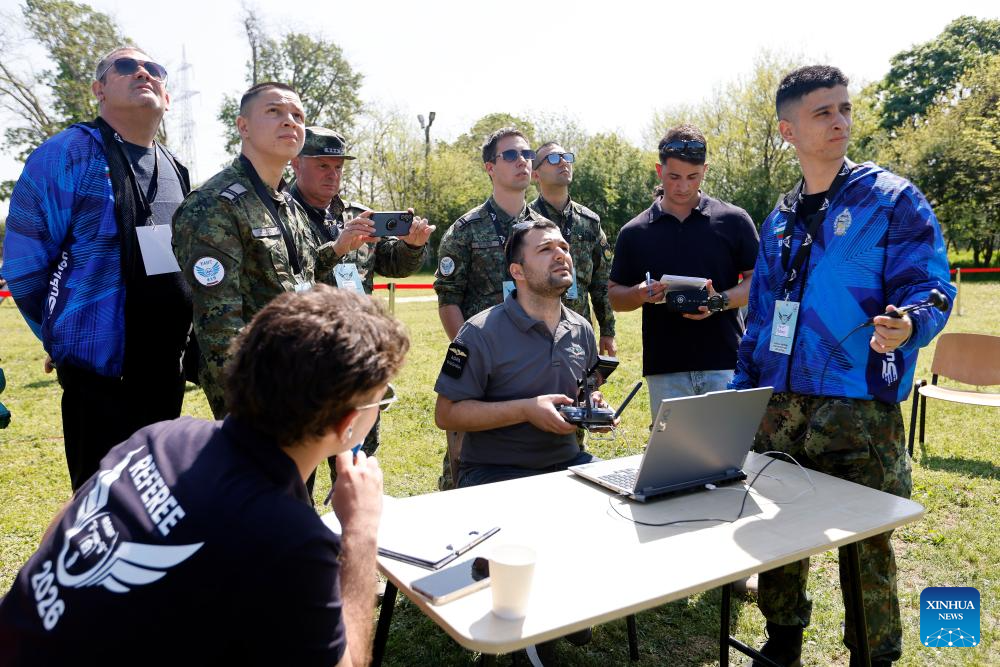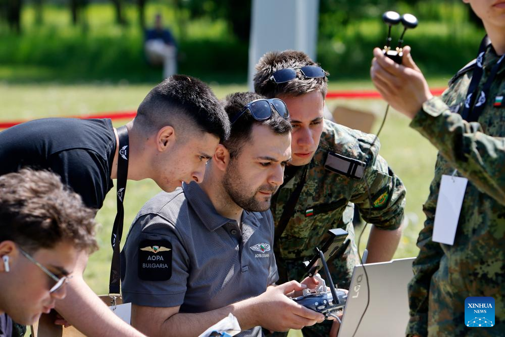 A member (C) of a Bulgarian military student team operates a drone during the Military Student Multirotor Fest, near Bucharest, Romania, April 28, 2026. Military students from Bulgaria, France and Romania participate in the 3-day event, competing with their self-built equipment to demonstrate their technical and piloting skills. (Photo by Cristian Cristel/Xinhua)