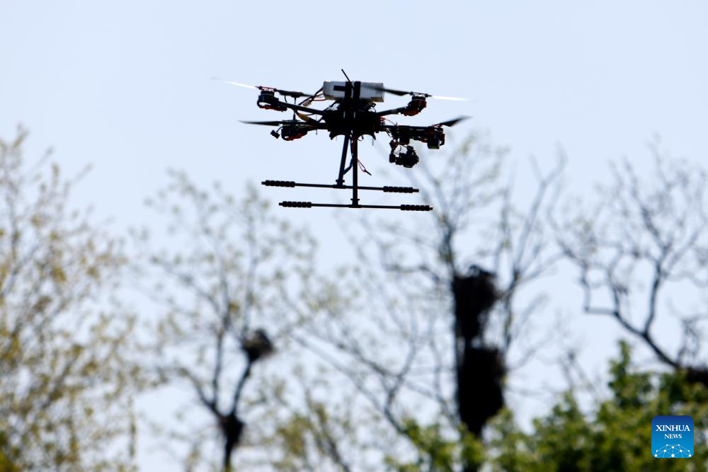 Members of a French military student team operates a drone during the Military Student Multirotor Fest, near Bucharest, Romania, April 28, 2026. Military students from Bulgaria, France and Romania participate in the 3-day event, competing with their self-built equipment to demonstrate their technical and piloting skills. (Photo by Cristian Cristel/Xinhua)