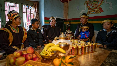 Family celebrates Gongbo New Year in Suosong Village, Xizang