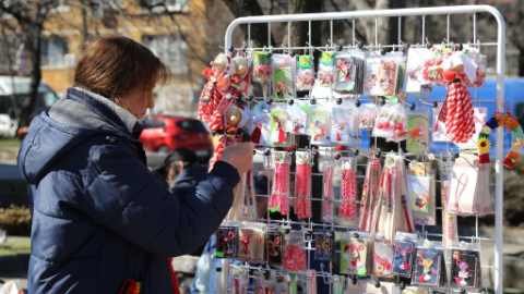 Bulgarians wear "Martenitsa" to mark Baba Marta in Sofia