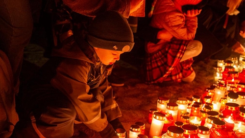 People attend torchlight procession during event to mark Lacplesis Day in Latvia