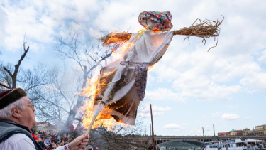 People in traditional costumes welcome spring in Prague
