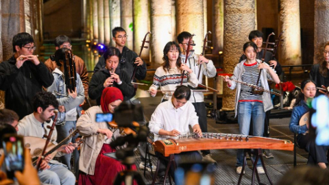 Flash mob performance of Chinese folk music staged in Istanbul, Türkiye