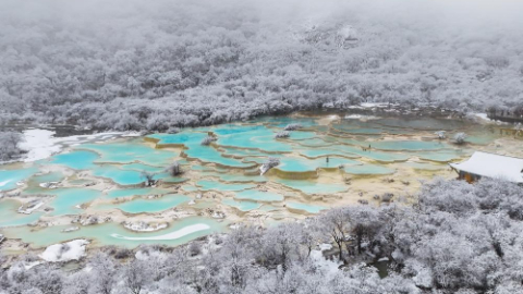 Scenery of colorful pond cluster at Huanglong scenic area in China's Sichuan