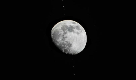 Snapshots of Chinese space station passing in front of Moon