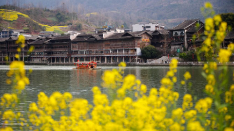 People visit rapeseed flower field in Xiucai Village, China's Chongqing