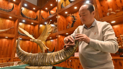 Wuling ox horn carving technique thrives in China's Guangxi