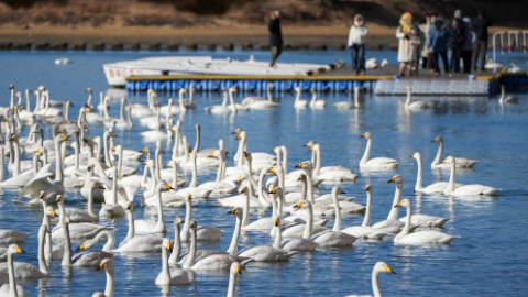 Over 6,000 migratory whooper swans flock to E China's Rongcheng to spend winter