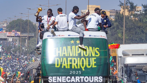 Senegalese football team celebrates after winning Africa Cup of Nations title