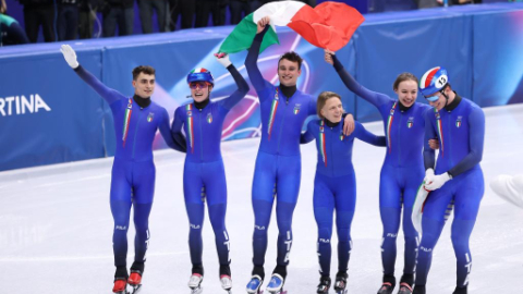Urgent: ltaly claims gold in short track speed skating mixed team relay at Milan-Cortina
