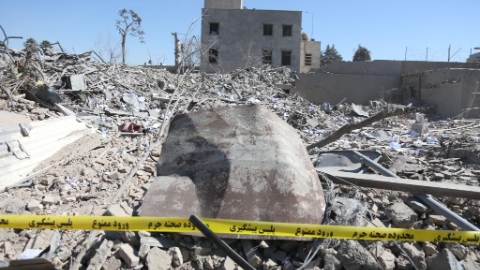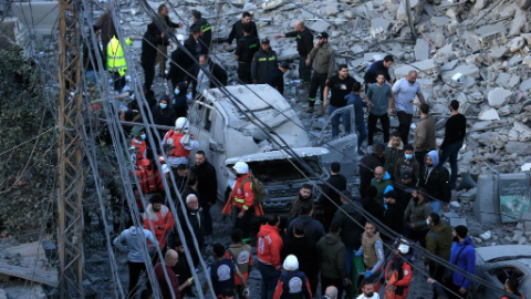 Aftermath of Israeli airstrikes on Islamic Group's offices in southern Lebanon