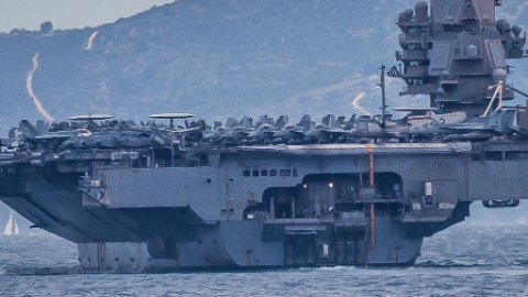 USS Gerald R. Ford aircraft carrier departs from Split, Croatia