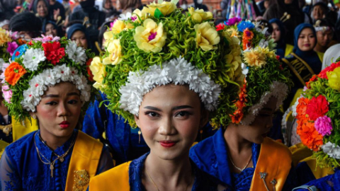People participate in celebration for Ngarot Festival in Indramayu, Indonesia