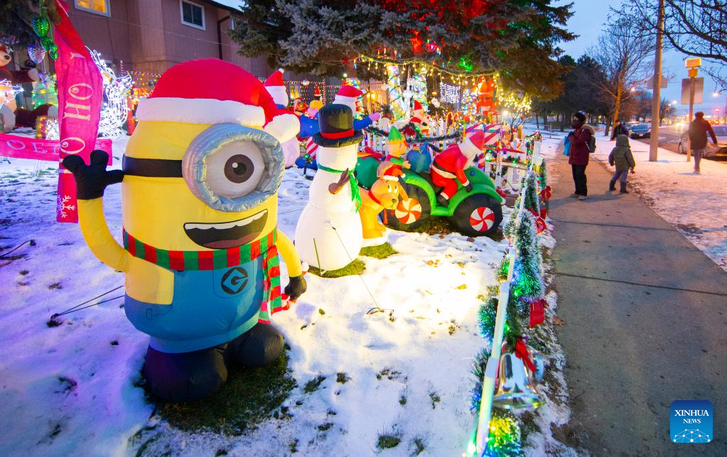 Colorful Christmas lights and decorations are seen outside a residential house in Toronto, Canada, Dec. 23, 2021. (Photo by Zou Zheng/Xinhua)