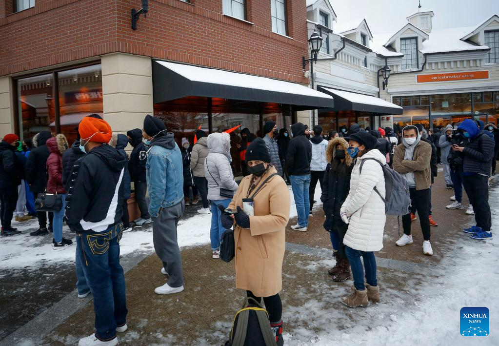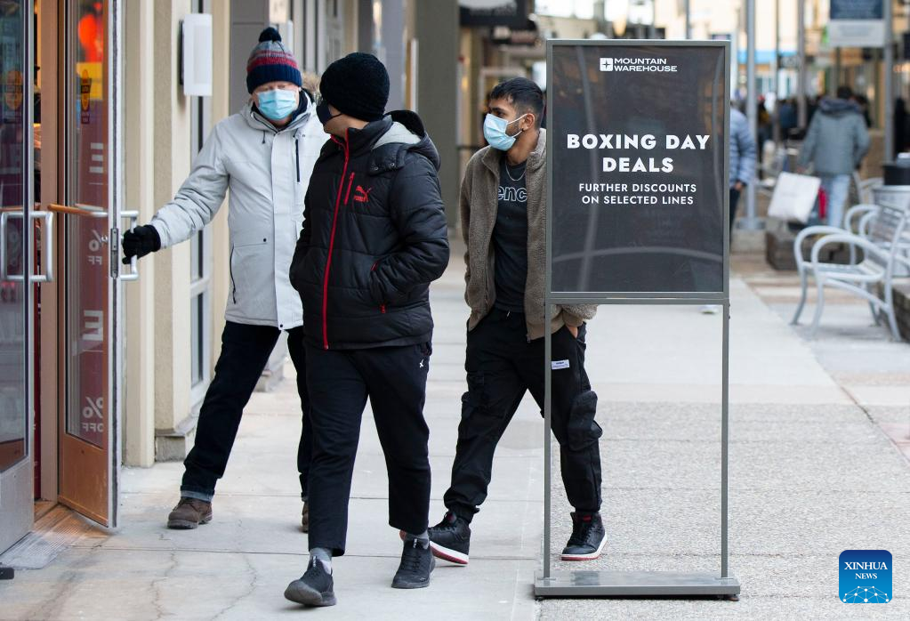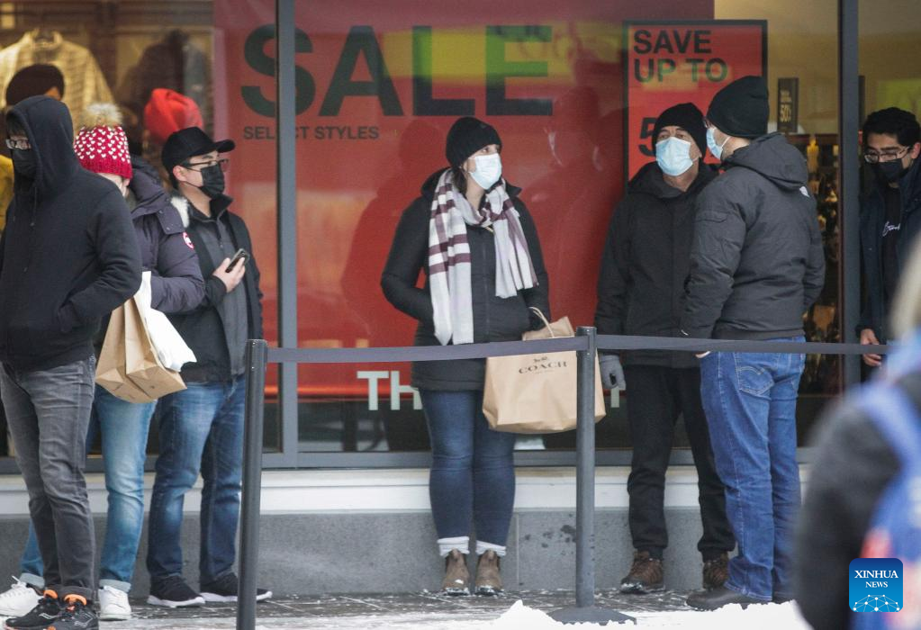 People do shopping at an outlet mall during Boxing Day sales in Halton Hills, Ontario, Canada, on Dec. 26, 2021. Boxing Day is one of the biggest shopping days in Canada. (Photo by Zou Zheng/Xinhua)