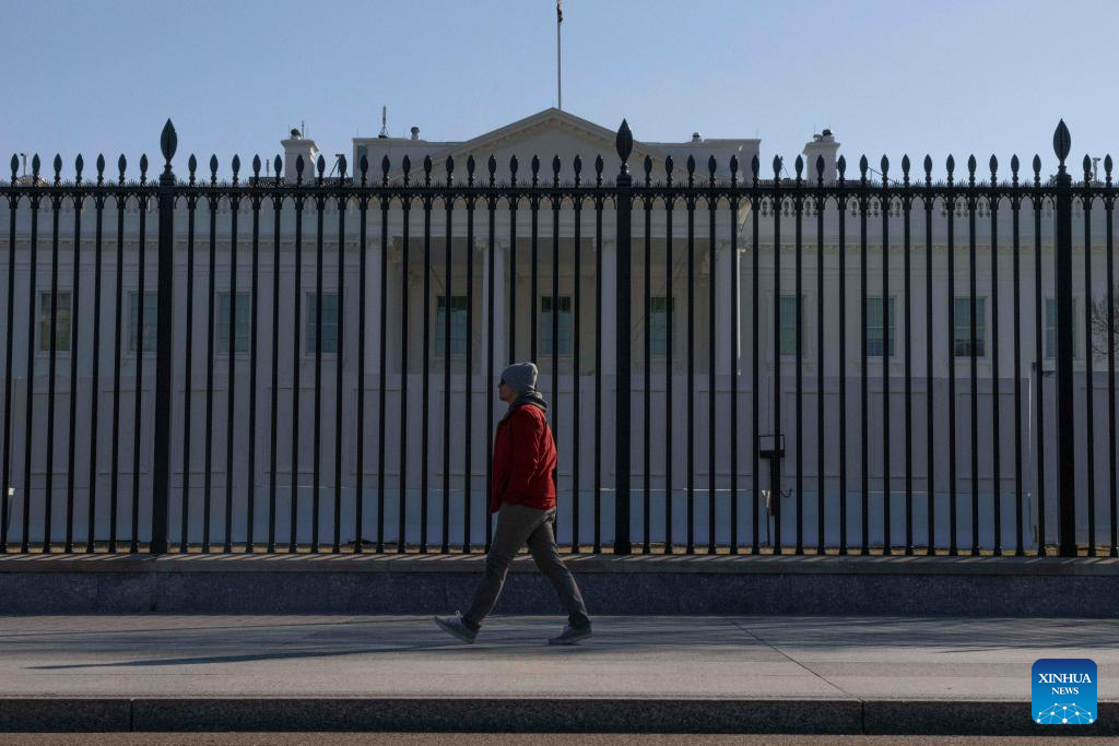 A man walks in front of the White House in Washington, D.C., the United States, on Feb. 15, 2022.