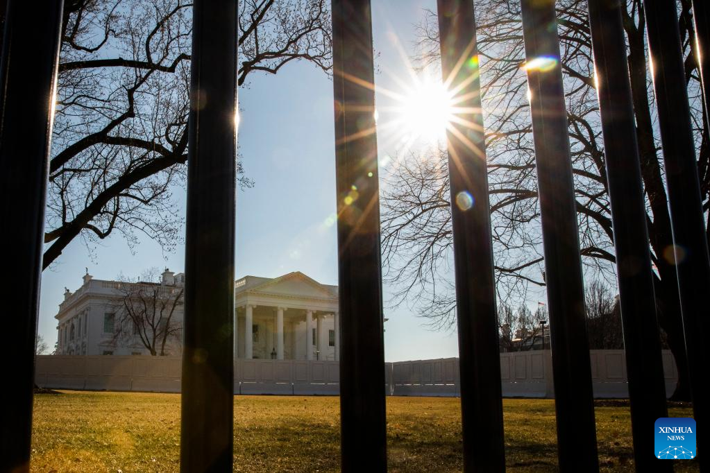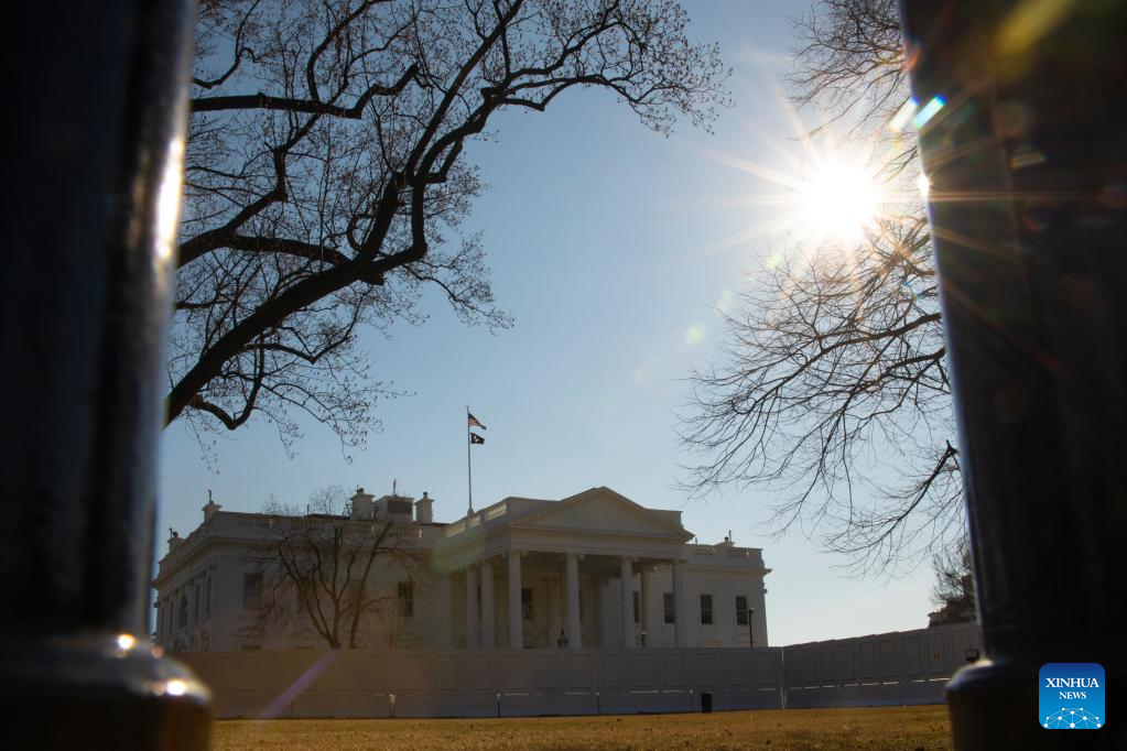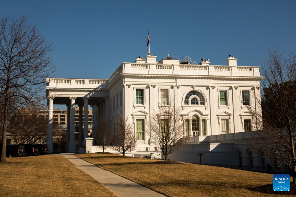 The White House is seen in Washington, D.C., the United States, on Feb. 15, 2022. U.S. President Joe Biden on Tuesday said the United States is still pursuing a diplomatic solution to the current standoff between Russia and the West over Ukraine, meanwhile warning Russia of severe sanctions should it choose to invade its neighbor. (Photo by Aaron Schwartz/Xinhua)